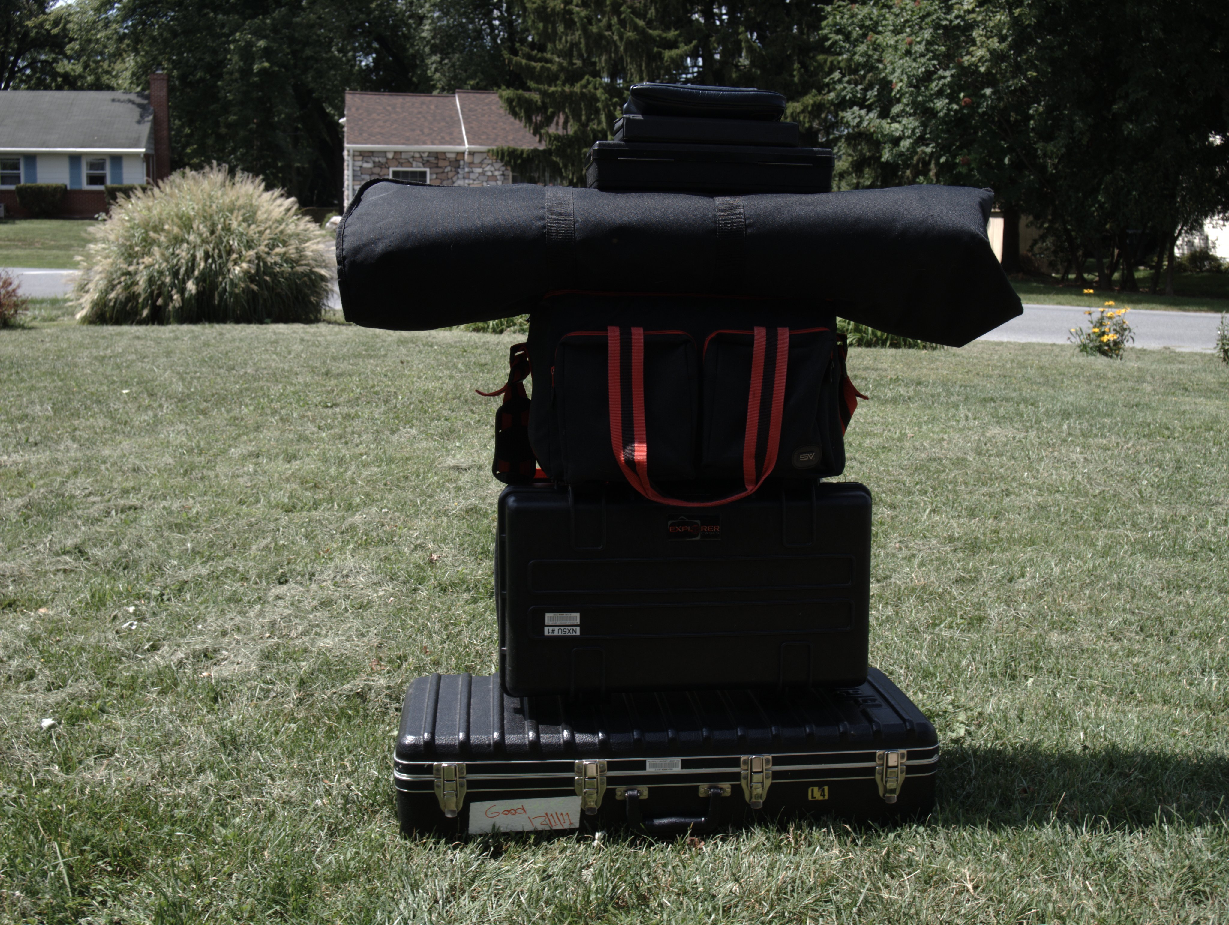 Well here it is, the stack of equipment I need to create the documentary. I actually followed the exact same list that I teach my students to use when they check out equipment. Lights, Sony NX CAM, Libec tripod, Ultra SD cards, mics, sand bag, XLR cables, go bag, gels, diffusion paper, boom pole etc. Looking forward to my first interview coming up soon.