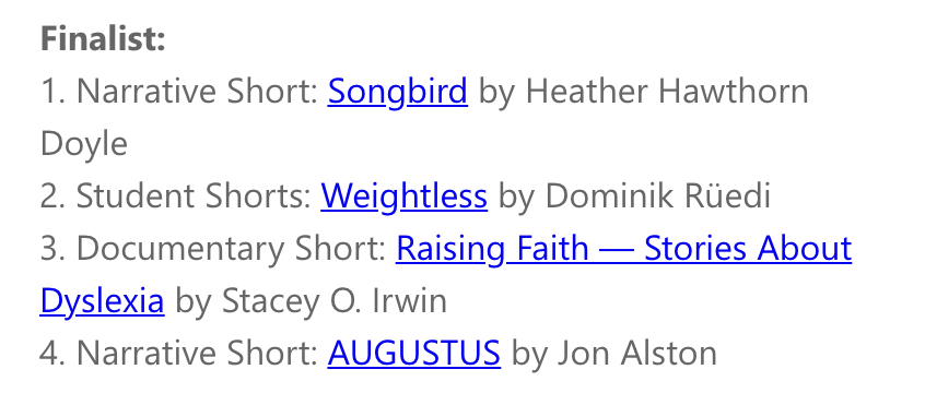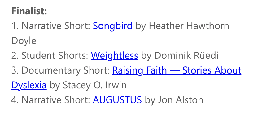 The Latin inspiratus, the past participle of inspirare, means “to breathe into, inspire.” And we always keep our main goal in focus, to breathe life into the understanding of the unique learning difference called dyslexia. It is always such an honor for our film to be recognized by our peers and the wider community of filmmakers, and we are happy to celebrate that Raising Faith is a “Documentary Short” finalist in the NY Inspirational Film Festival. This is our second finalist award for the film and we so appreciate the positive critique. Onward and upward.