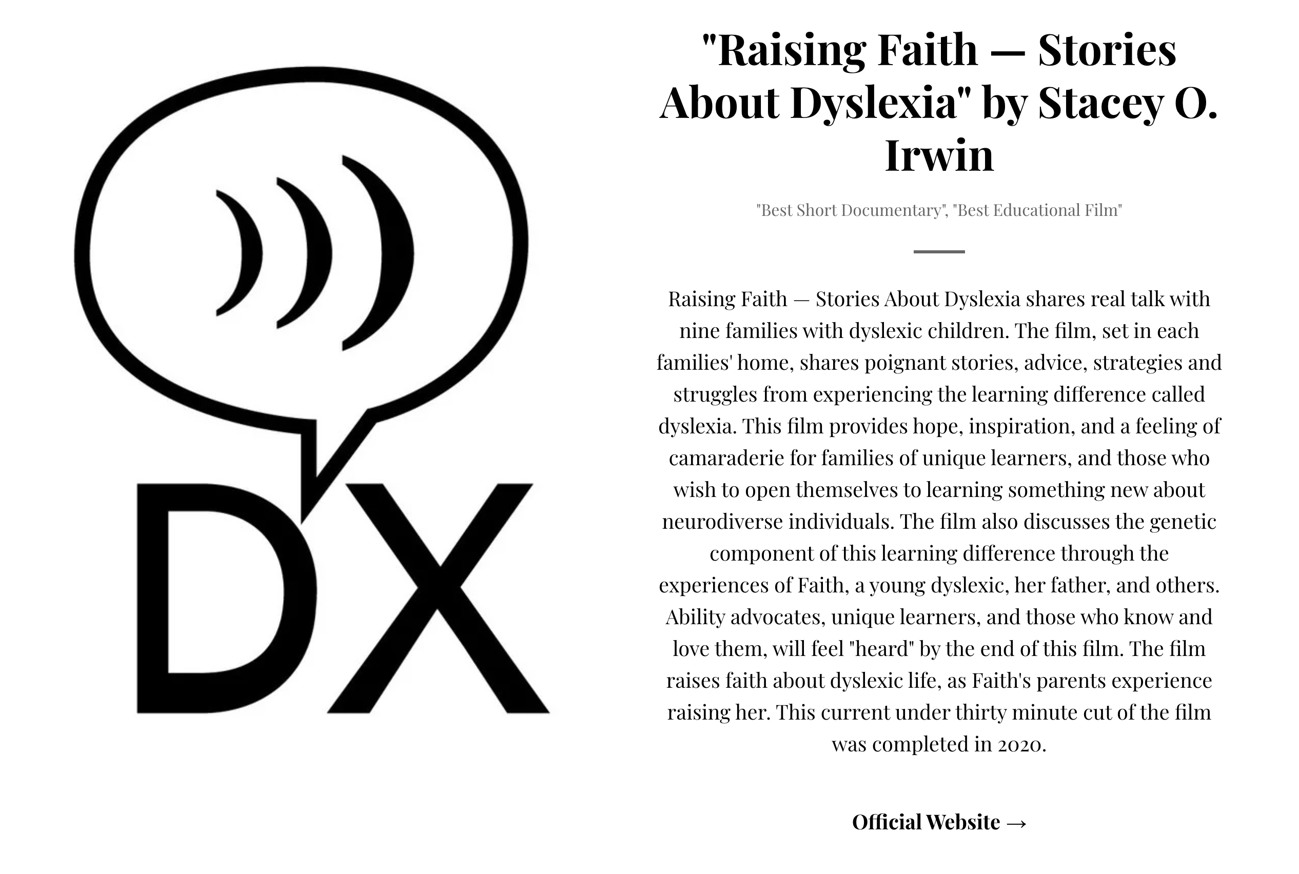 Official selection for Best Short Documentary and Best Educational Film Posted on June 8, 2023 The team is honored to be named an Official Selection and Featured film in two categories. Related